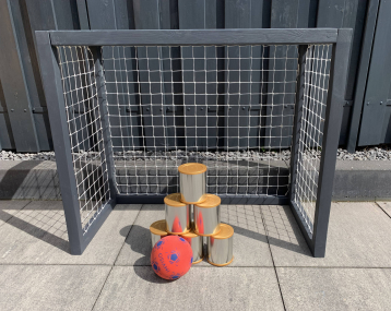 Schiet op goal en raak zo veel mogelijk blikken. Wie kan het beste mikken en lukt het om ze allemaal om te schieten?
