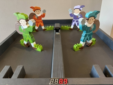 Zodra de bal het startvak verlaat, begint de klok op het ingebouwde schermpje te lopen. De tijd stopt automatisch, zodra de bal bij het eindpunt ligt. Wie legt het parcours zo snel mogelijk af.
