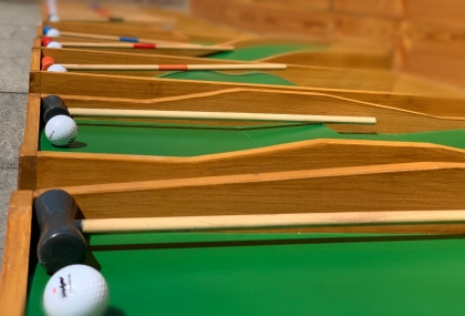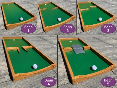 Speel minigolf met een golfstick en golfbal. Probeer iedere baan in zo min mogelijk slagen te behalen. Het lijkt misschien makkelijk, maar iedere baan heeft wel een hindernis, bocht of andere uitdaging.