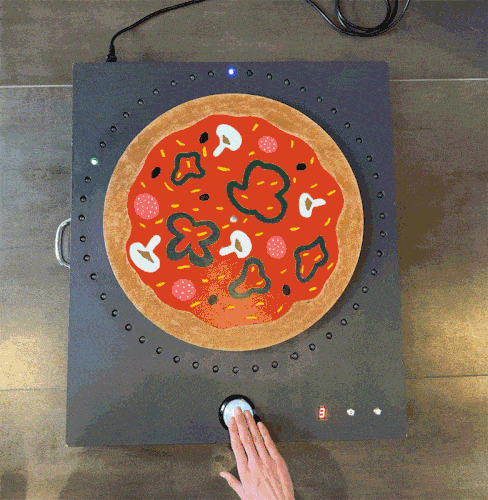 Druk je precies op tijd, dan krijgen de lampen allerlei kleuren (is de pizza klaar om uit de over te halen) en ga je naar het volgende level. Zo niet, dan worden alle lampen rood en kun je het nog eens proberen.