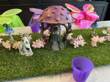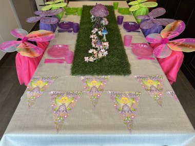 Om uw huis of feestlocatie om te toveren in een magisch elfjesrijk krijgt u bijpassende tafeldecoratie bestaande uit: bordjes, bekers, bestek, een tafelkleed, elfjes vlaggenlijn en ander bij het thema passend decoratiemateriaal.